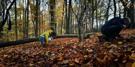 - Der Wald ist clever: Nachdem die Bäume ihre Samen fallen lassen, bedecken sie diese mit abgeworfenen Blättern, was die Suche nach den Samen erschwert.
